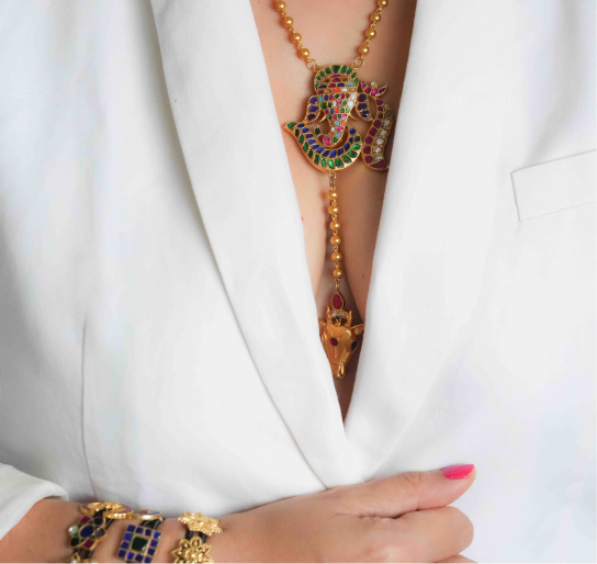 Like many jewellery lovers, my affair with baubles began at a young age, sneaking into Mama’s bangle drawers to play dress up. My career as Fashion Director with a leading Indian luxury and lifestyle magazine led to years of access and exposure – encompassing jewellery houses all over the world and allowing me to push boundaries and present my take on accessorising. Then followed a period which organically veered me towards ornamentation each time – collaborating with a fine jewellery brand to create everyday jadau, working with the Gem and Jewellery Council of India to build a platform for budding designers through artisanal contests and finally, really thinking about the jewellery I wanted to wear – every day and for every occasion.