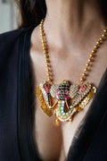 Cadmium-free brass. 18k gold plating. Engineered, custom-cut stones and/or pearls.