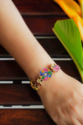Cadmium-free brass. 18k gold plating. Engineered, custom-cut stones and/or pearls.