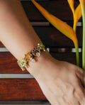 Cadmium-free brass. 18k gold plating. Engineered, custom-cut stones and/or pearls.