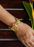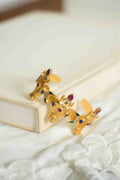 Cadmium-free brass. 18k gold plating. Engineered, custom-cut stones and/or pearls