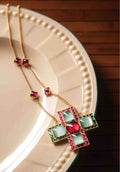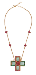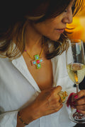 Cadmium-free brass. 18k gold plating. Engineered, custom-cut stones and/or pearls.