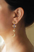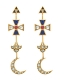 Cadmium-free brass. 18k gold plating. Engineered, custom-cut stones and/or pearls.