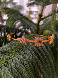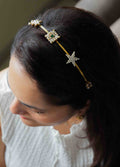 Cadmium-free brass. 18k gold plating. Engineered, custom-cut stones and/or pearls.