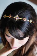 Cadmium-free brass. 18k gold plating. Engineered, custom-cut stones and/or pearls.