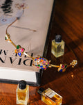 Cadmium-free brass. 18k gold plating. Engineered, custom-cut stones and/or pearls.