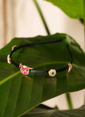 Black satin or gold metal band.