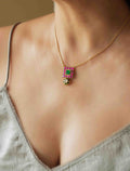 Cadmium-free brass. 18k gold plating. Engineered, custom-cut stones and/or pearls.