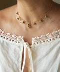 Cadmium-free brass. 18k gold plating. Engineered, custom-cut stones and/or pearls.